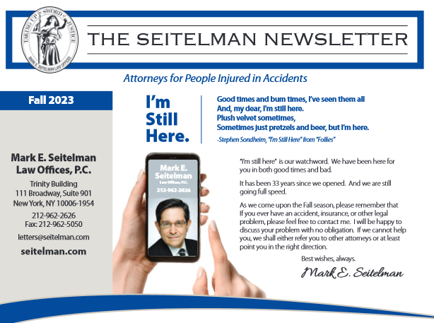 An NYC personal injury attorney from our firm has helped many clients in similar situations get back on their feet after suffering life-altering injuries. We can fight for your rights moving forward to ensure you get the compensation you deserve. For legal representation and advice on how to best move forward with your case, contact Mark E. Seitelman Law Offices – Accident & Injury Attorneys today at 212-962-2649.
